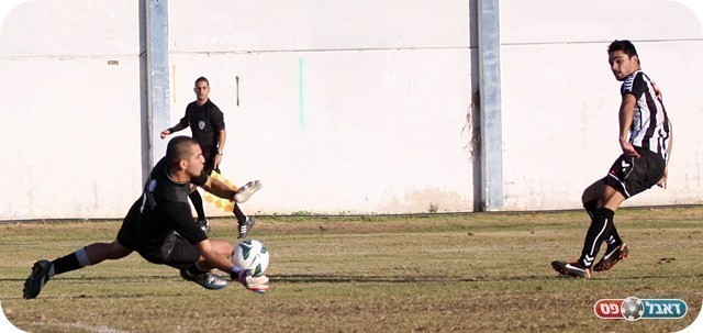 אסולין (מוסתר) כובש את הראשון של לוד (צילום: לירן דורף)