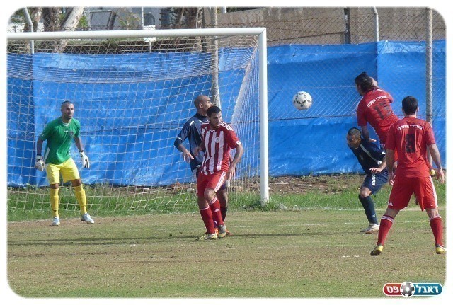 מרחבים סיכנה יותר את השער במחצית השנייה. אלעד פרץ מנסה לנגוח (צילום: אלירן ברנשטיין)