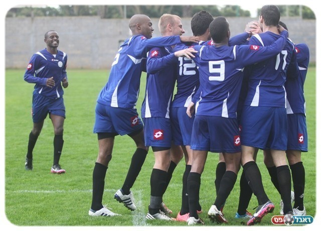 ההרחקה פגעה קשות בכפר קנא. שחקני חדרה חוגגים (צילום: שלומי גבאי)