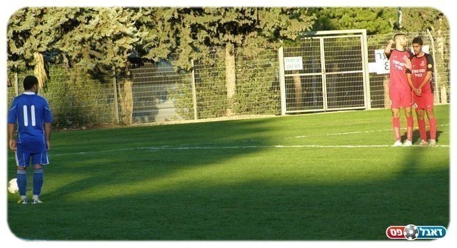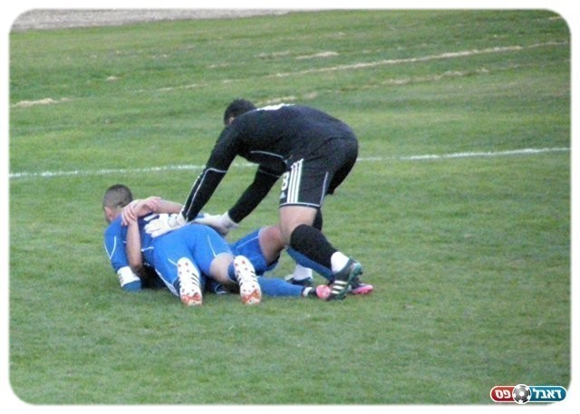 בדקה ה-25 עומר בוארון פרץ ממרכז המגרש ומסר לאריאל עוז, אך רגע לפני שהכדור הגיע אליו והוא נשאר לבדו מול השוער, הגיע יוגב אלישע וחסם את המסירה ומנע מבוכה.