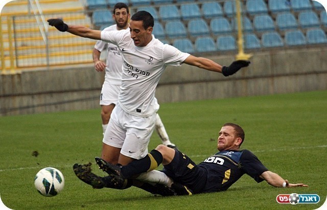 ההזדמנות הראשונה של הרצליה. קאסם מחמיד בורח ממוטי כלטוב (צילום: לירן דורף)