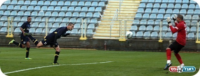 בדקה ה-35 פרץ משמאל נסראלדין, חדר לרחבה ומ 15 מטרים שיחרר כדור חזק לפינה הקרובה שחמק סנטימטרים מהקורה.