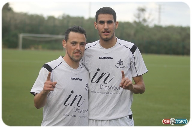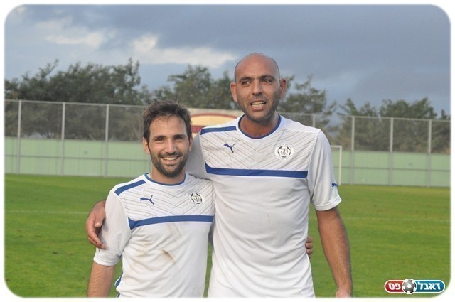 עפולה דוהרת !! שחר סימן טוב(מימין ) ואורן עידו שכבש את השני(צילום:חאדר אניס)