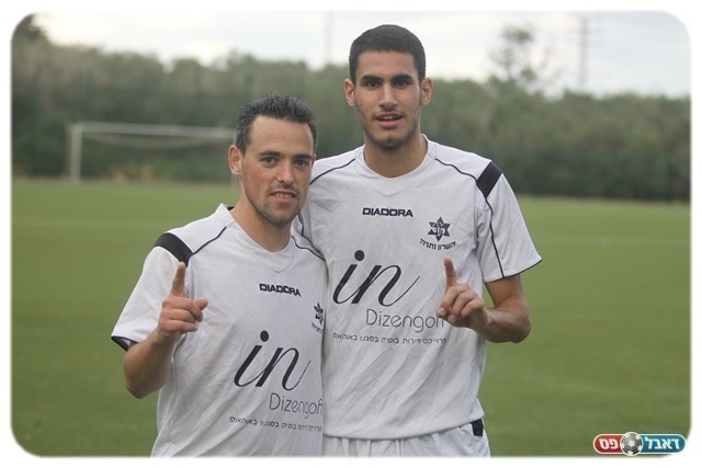 ניצחון בכורה. צמד הכובשים, ג'אן (מימין) וקיטלמן (צילום: שלומי גבאי)