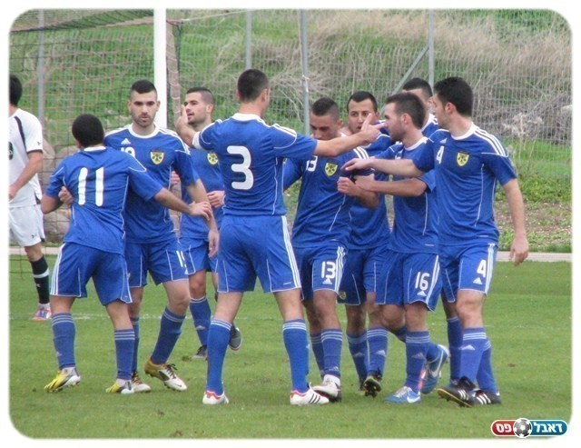 שער ראשון לחלוץ. חוגגים את הראשון של דהן (צילום: עודד חסין)