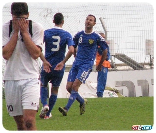 מפגש שני עם הרשת. מאור סיסו תופס את הראש כשהכדור של חמודה ברשת (צילום: אמיר שיבי)