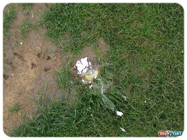 הקוון התלונן. ביצה שהושלכה לעבר המגרש (צילום: אמיר שיבי)