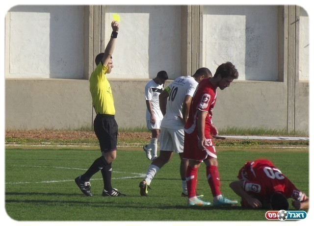 הרבה צהובים. שרון זוזוט (מס' 10) אחרי עבירה על קיקו כהן (צילום: אייל אורן)