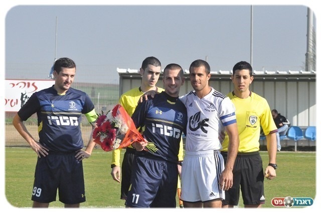 לפני השריקה העניקו אנשי גלבוע זר פרחים לאבי מלכה ששיחק אצלם בעונה שעברה.