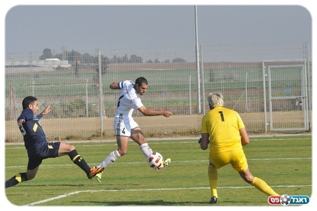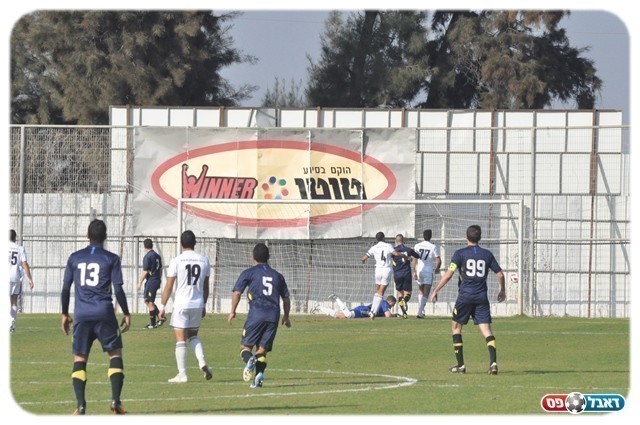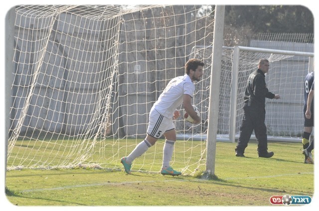 בדקה ה-12 הכניס גיא צרפתי כדור בחצי גובה לרחבה ואבי עמוס שהיה ערני קלט בזינוק את הכדור.