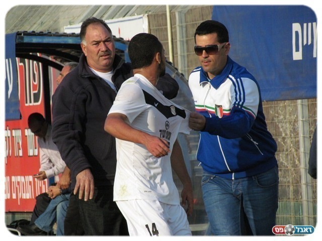 המהומה נמשכת אל מחוץ למגרש. העימות בין שעבאן לאזולאי (צילום: חג'ג' רחאל, אתר אלערב)