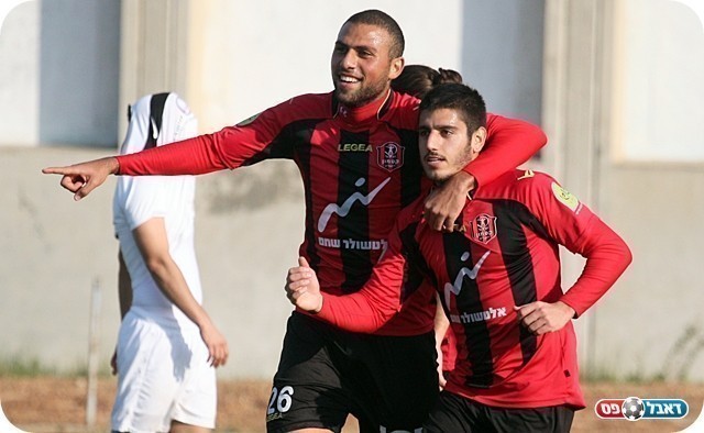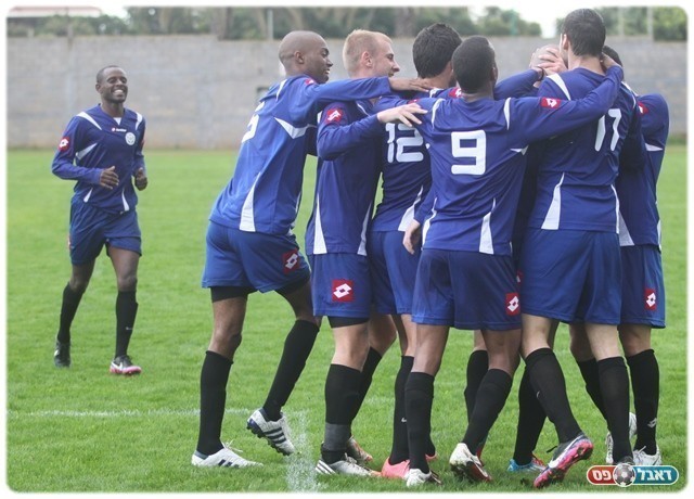 שחקני חדרה חוגגים שישיה. טמניו(משמאל) קינח בצמד
