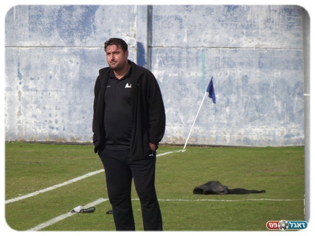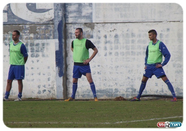 שלמה אותת לשחקניו. שחקני הספסל מתחממים (צילום: אלירן ברנשטיין)