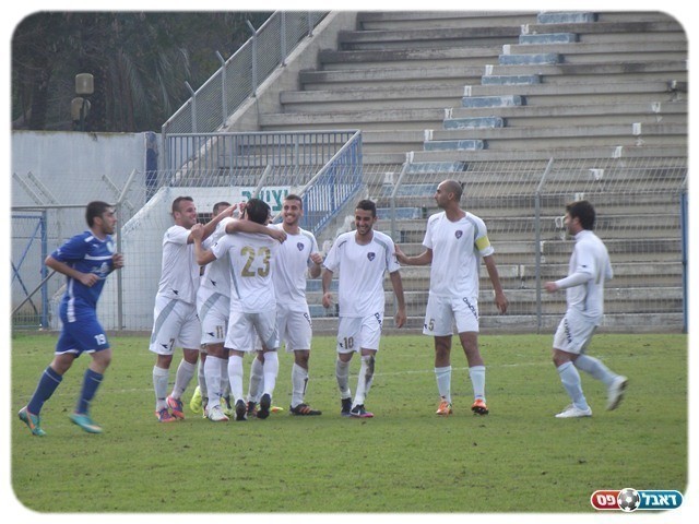 חולון נכנסה להלם. שחקני באר יעקב חוגגים (צילום: אלירן ברנשטיין)