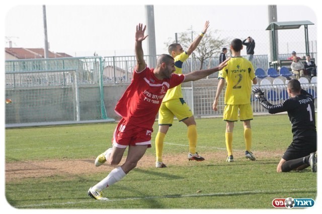 בדקה ה-24 מויז'ה הוריד בראשו כדור לרותם מרום שבעט הישר לגופו של השוער האורח, שי גלזר. ארבע דקות מאוחר יותר, היה שכפול של המהלך, אלא שהפעם מרום דייק והעלה את ערד ליתרון.