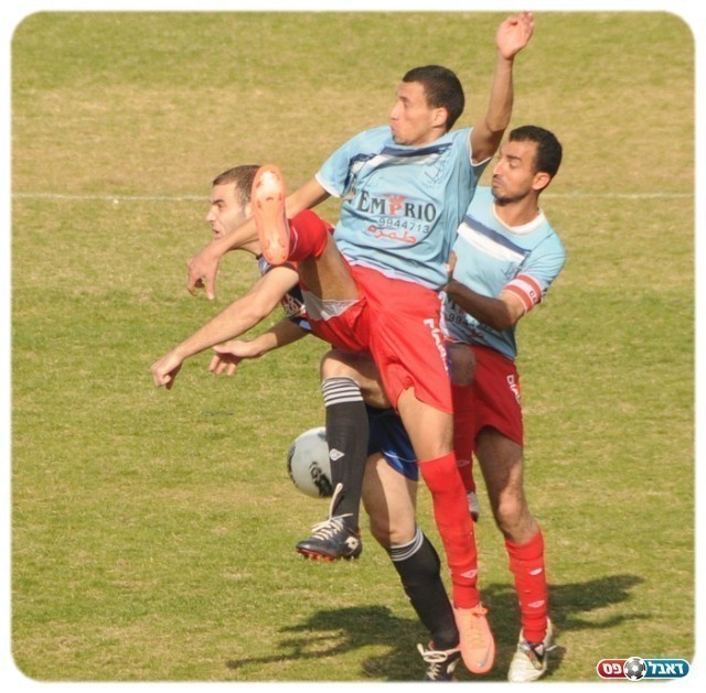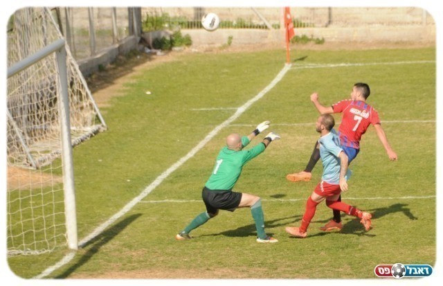 מצאו את שני השוערים מוכנים. אבו אחמד בולם את התקפת מג'אר (צילום: פורטל מרמר)