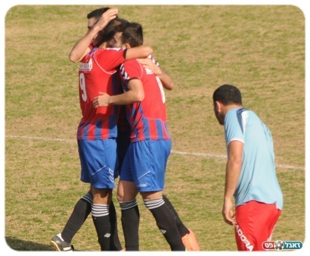 המחצית נפתחה בסערה. חוגגים את היתרון (צילום: פורטל מרמר)