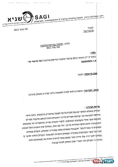 הבדיקה בוצעה אתמול (יום א') והבוקר קיבל עו"ד בוזגלו את הממצאים לידיו על פיהם השוער לא מכר את המשחק ולא קיבל תמורה או טובת ההנאה ממישהו לצורך הטיית תוצאותו.