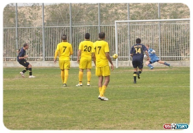 פנדל גבולי מאד. דודו ביטון כובש מנקודה הלבנה (צילום: שי מוגילבסקי)