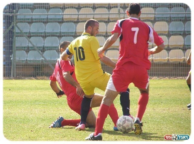 משחק גורלי למעלות. אילן טל (בצהוב. צילום: אמיר שיבי)