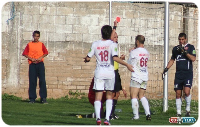 חמש דקות חלפו ועידן חג'ג' קיבל כדור נהדר, שעט לעבר שערו של עמית שמש, ובמקום לשחרר בעיטה, התמהמה מעט עד שאביעד דנן הגיע והוציא את הכדור בצורה נקייה מרגלו. השופט טל קפלן, באחת ההחלטות השערורייתיות ביותר שנראו העונה, שרק לפנדל והרחיק את דנן באדום ישיר. השופט יניב אבידן, ששפט היום בלוד, הגיע לחזות במשחק ואמר לאחר השריקה: "אני לא ראיתי מה היה, אבל צריך אומץ בשביל לשרוק לשני פנדלים בהפרש כזה"