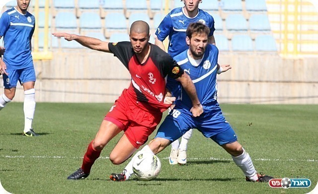 מהפכה של ממש בהרכב. אלסברי (באדום) ואורן עידו במאבק (צילום: לירן דורף)