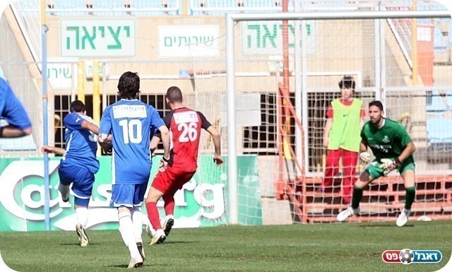 בדקה ה-70 ברק דניאל שנכנס מעט קודם לכן אל כר הדשא, מצליח לחטוף כדור מרבינוביץ' ולהוציא פס רוחב טוב למרכז הרחבה שם ניצב בן שושן שבגליץ' פיספס את הכדור בסנטימטרים והרצליה ניצלת מתבוסה.