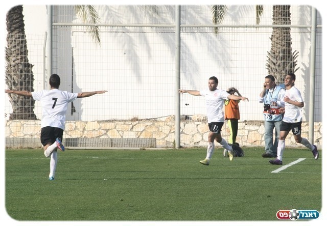 חשבו שהניצחון בכיס. אבו יונס חוגג את השני (צילום: מיכה פישנזון)