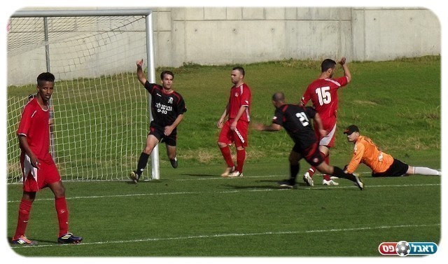 דקה – 12 חלפון עוצר מצוין את הכדור ומשאיר אותו לליאב פרנקו שמתוך הרחבה מזעזע את המשקוף בבעיטה מצוינת.