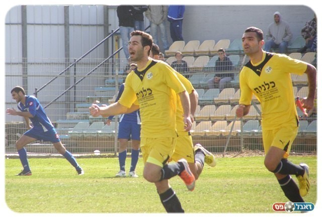 אחרי רבע שעה של משחק, אילן טל הגביה לרחבה כדור חופשי מקו מחצית המגרש, נידאל חוג'יראת הוריד לאדם פלח, הבלם שלח רוחב לליאור דה כלבו שמחמישה מטרים הפציץ פנימה, 0:1 ששחררו זעקות שמחה מהספסל המקומי.