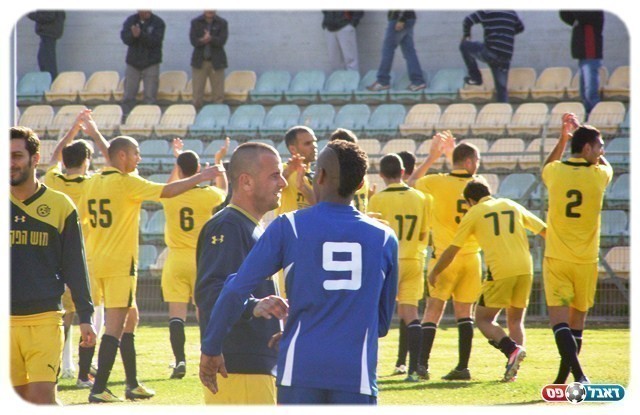 הודו לצופים. הכובש ושחקני מעלות בסיום (צילום: אמיר שיבי)