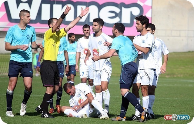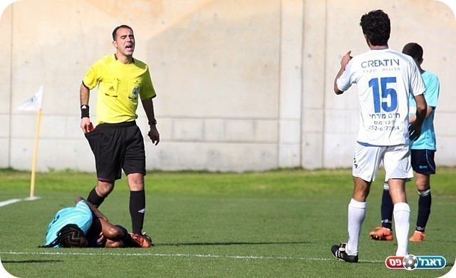 המשחק התחמם. יפו דורשת צהוב שני לבלילי (צילום: לירן דורף)
