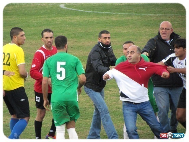 אברהים פדעוס (מימין). העימותים בתוך המגרש (צילום: אתר "כול עראב")