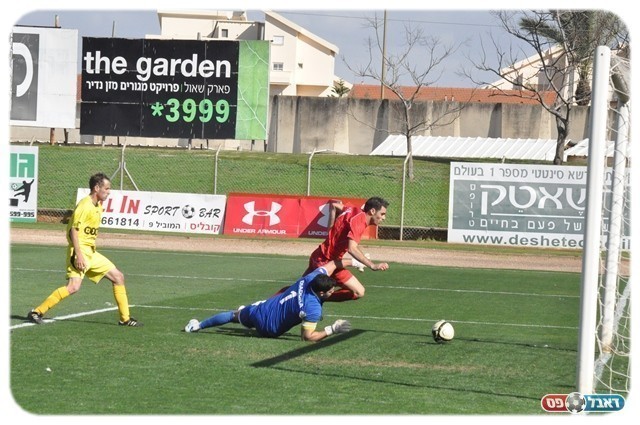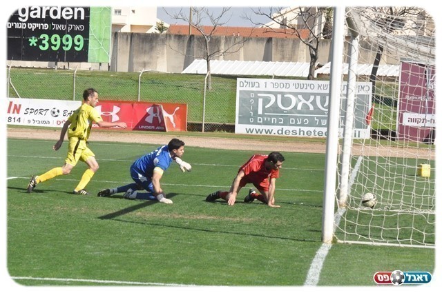 המשחק המטורף נמשך ובדקה ב-19 קיבל חיים קנאפו מסירת רוחב מאלירן שחר, טיווח את השער מ-16 מטר אך רז היה במקום כדי להדוף.