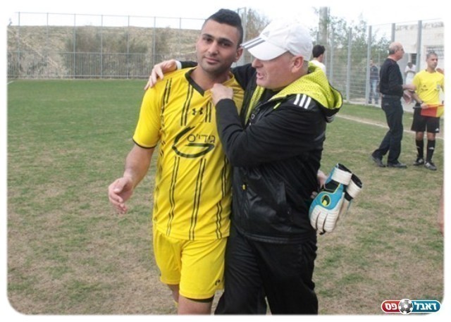 הקריב את עצמו למען הקבוצה. ניר מברך את כראדי (צילום: שי מוגלבסקי)