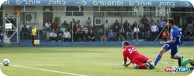 ניסה את מזלו בבעיטה. גיא אבן עוצר את פרג' (צילום: לירן דורף)