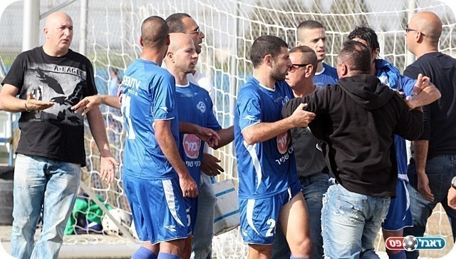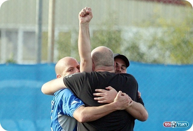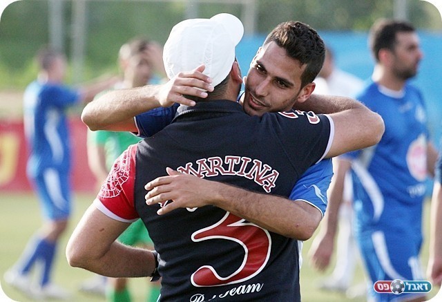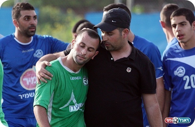 שמחת המנצחים ותוגת המפסידים. זדה מנחם את אבן (צילום: לירן דורף)