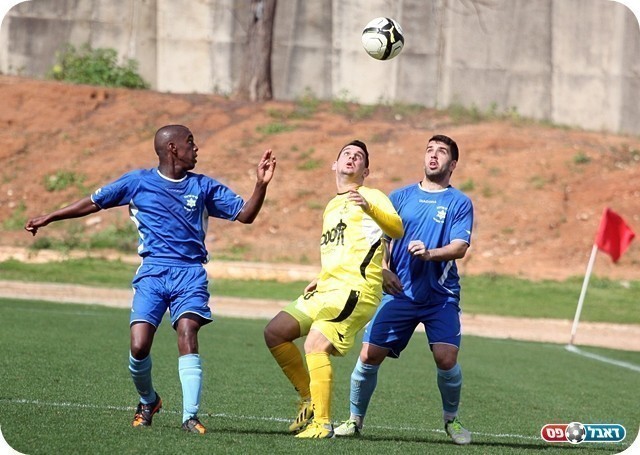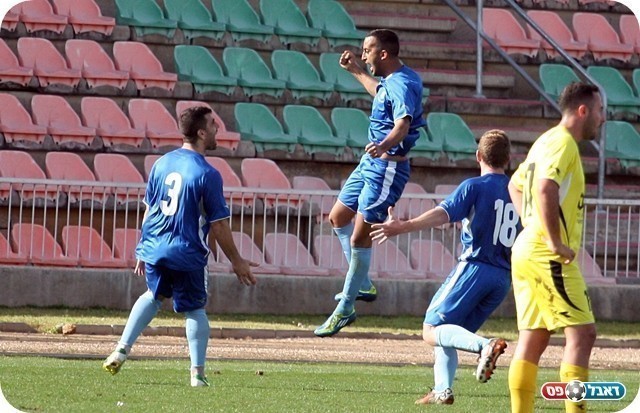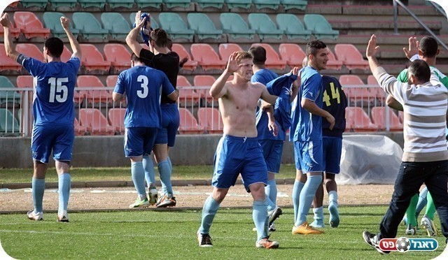 ניצחן מתוק. שחקני מלאכי ויניב עזריה חוגגים בסיום (צילום: לירן דורף)