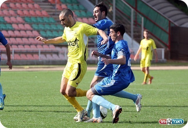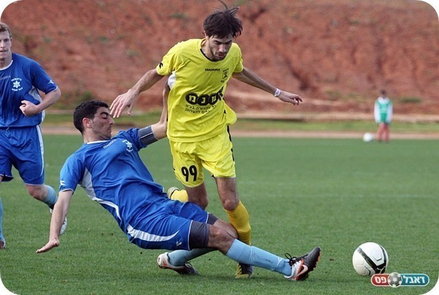 חלוץ בודד. אסי כהן (בכחול) מול חג'ג' (צילום: לירן דורף)