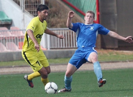 כפ"ס החזיקה בכדור רוב הזמן. איילה מנסה לעבור את ראוסר וזלינגר (צילום: לירן דורף)