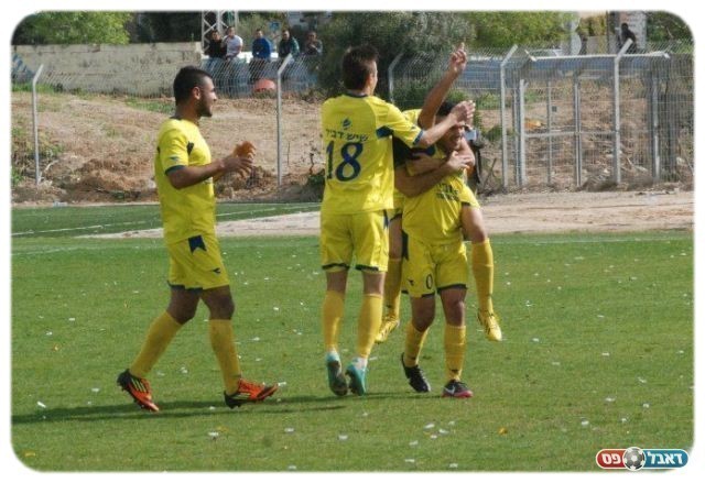 יש חברות וביחד. שחני קריית גת חוגגים את הניצחון על יפו (צילום: ולדי מויסייב)