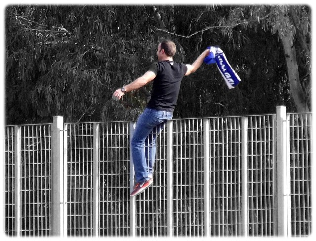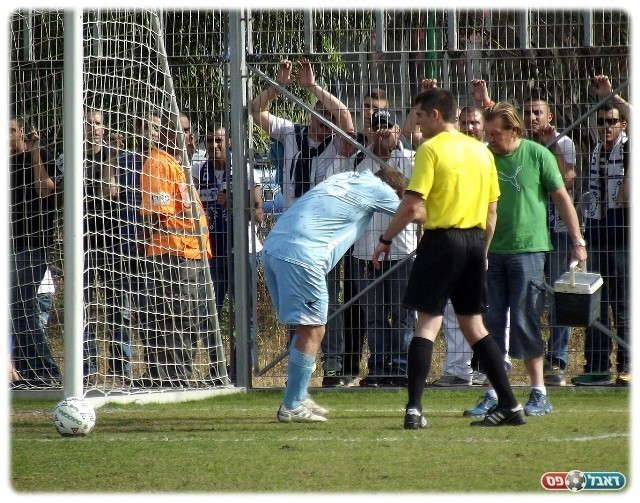 במחצית נטשו אוהדי שעריים את היציע שלהם והלכו לעמוד בצמוד לגדר שמאחורי השער של עמישב. אני רק מתאר לעצמי את ההרגשה של טום גלברט. נסו אתם להתרכז במשחק שמאחוריכם עומדים כ-70 אנשים שלא מפסיקים לעודד, לקלל ולתופף.