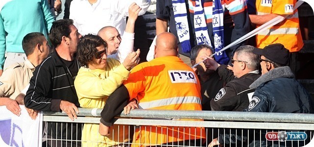 עימות מיותר ביציע. הסדרנים עשו עבודתם נאמנה (צילום: לירן דורף)