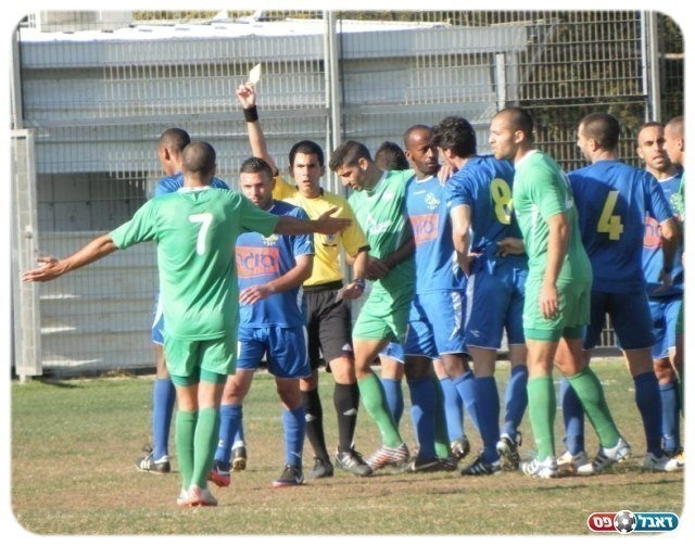 שני צהובים כבר בדקה ה-25. הצהוב לשלומי משה (צילום: ולדי מויסייב)