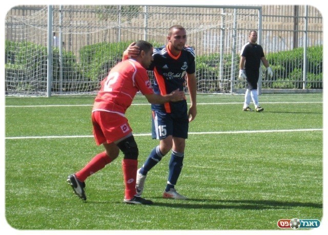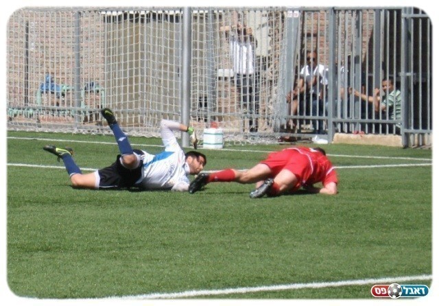 החזיר את קריית שלום למשחק. בן דיין (בכחול) ושמעון בנדי (צילום: אלי שמואלי)