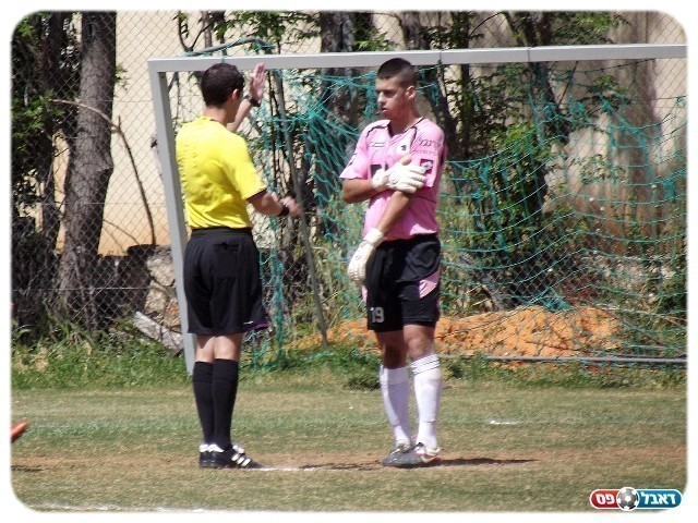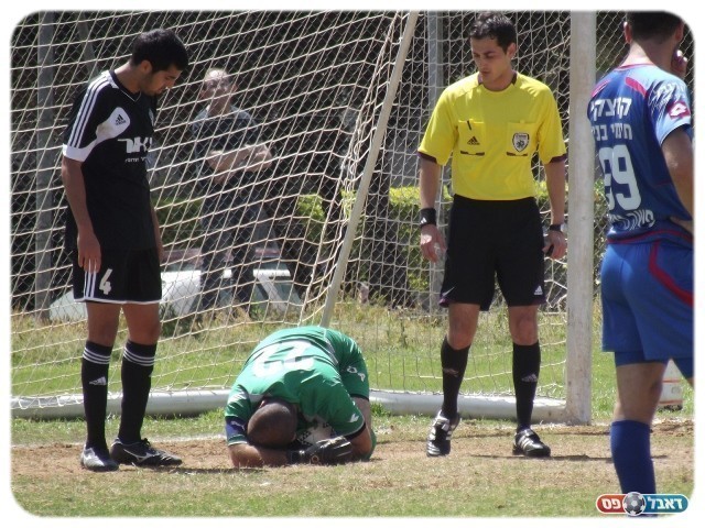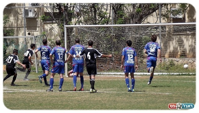 תומר שפט מניח את הכדור על הנקודה הלבנה ובבעיטה טובה וחזרה הכניע אל חגי ילון, 0:1 למחנה.