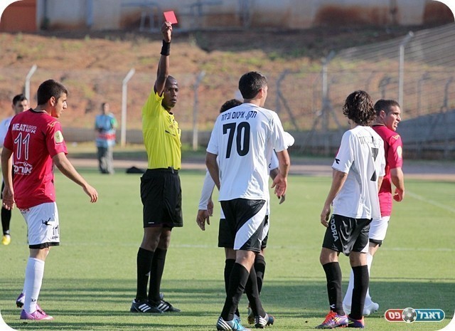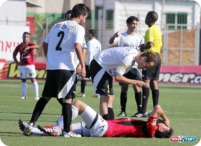 אדום מיותר. הררי מפיל את דנן ומורחק (צילום: לירן דורף)