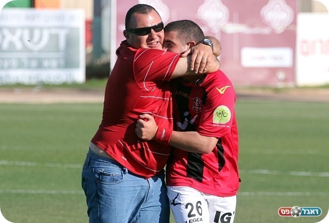 "עובד קשה באימונים". עובד מקבל חיבוק מאשר גולה (צילום: לירן דורף)