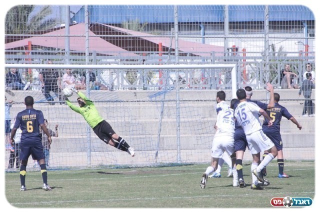 שיכון לא סיכנה יותר מידי את השער. ההצלה של וולקוב והפציעה של משען (צילום: שי מוגילבסקי)