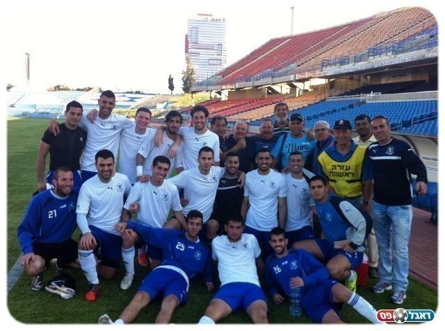 חגגו כאילו זכו באליפות. שחקני ר"ג (צילום: משה יצחק)